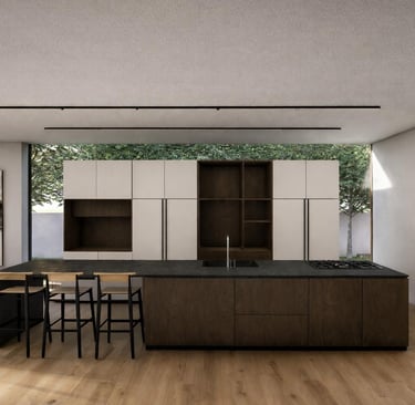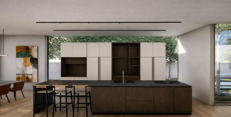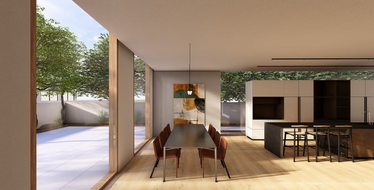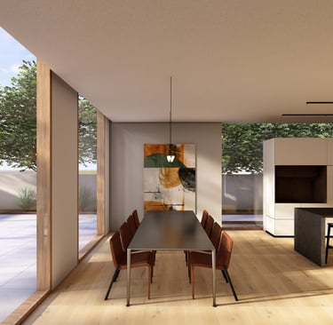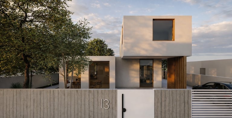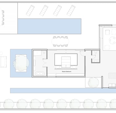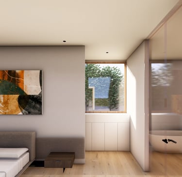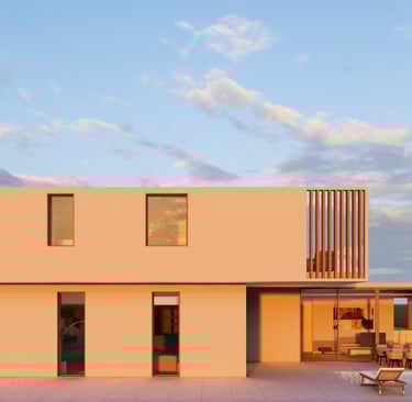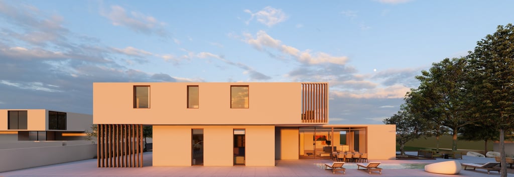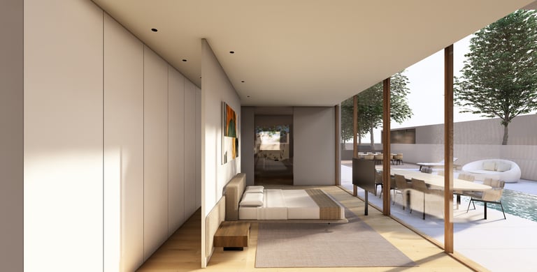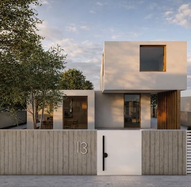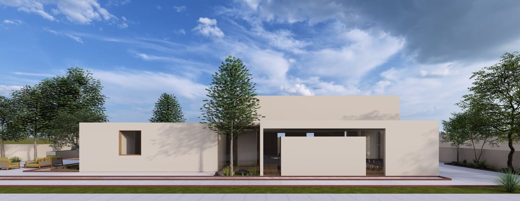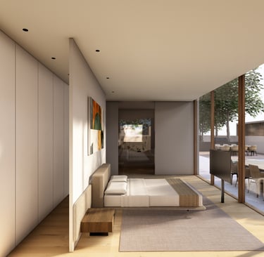 בית פרטי שתוכנן על טופוגרפיה משופעת ועם דגש על חזיתות אטומות מול פתוחות. ביציאה לחצר נמצאת הבריכה ופינות הישיבה ובהמשכה יורדים בעזרת מדרגות בטון בנויות בטופוגרפיה אל פינות ישיבה אינטימיות יותר. בפרויקט נעשה שימוש בחומרים כמו חלודה, פרקט מעושן ובטון חשוף, פרופילי החלונות גם הם מעץ מה שמעניק לבית הרגשה חמימה ומשפחתית בשילוב עם רצפת הפרקט.