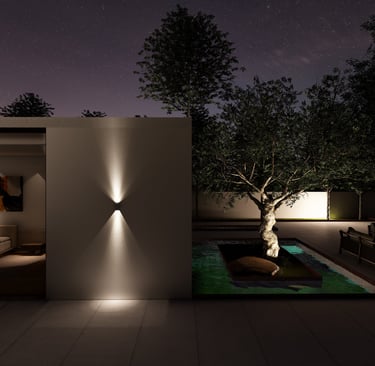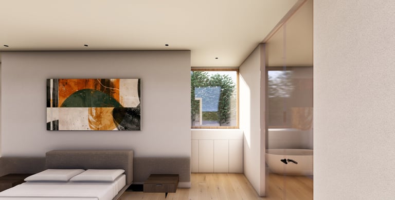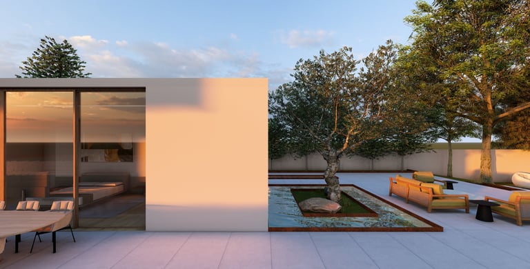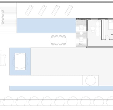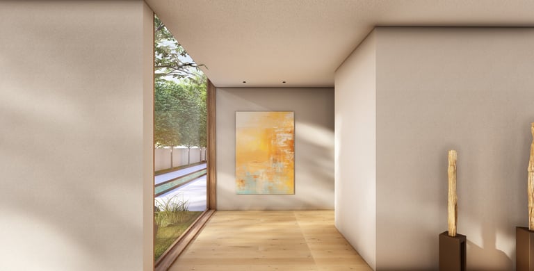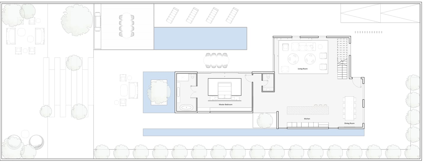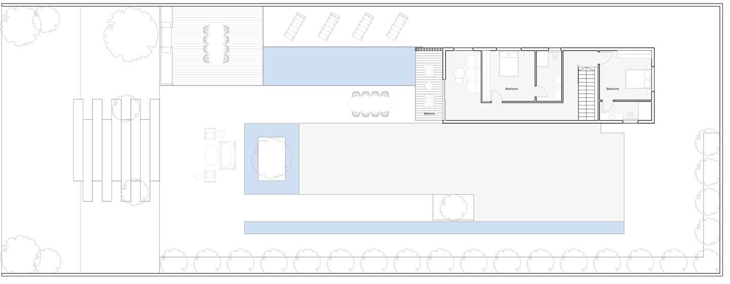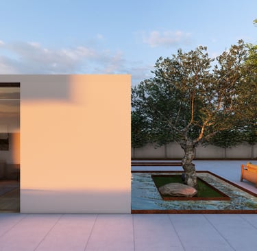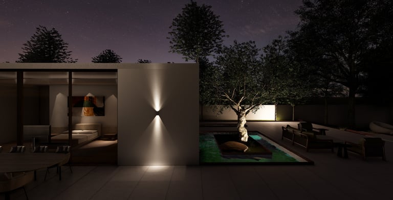 בית פרטי שתוכנן על טופוגרפיה משופעת ועם דגש על חזיתות אטומות מול פתוחות. ביציאה לחצר נמצאת הבריכה ופינות הישיבה ובהמשכה יורדים בעזרת מדרגות בטון בנויות בטופוגרפיה אל פינות ישיבה אינטימיות יותר. בפרויקט נעשה שימוש בחומרים כמו חלודה, פרקט מעושן ובטון חשוף, פרופילי החלונות גם הם מעץ מה שמעניק לבית הרגשה חמימה ומשפחתית בשילוב עם רצפת הפרקט.